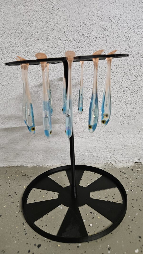 Ob du Softbaits selbst herstellst oder bestehende Gummifische neu laminierst – der DippBuddy spart dir Zeit, sorgt für perfekte Ergebnisse und hält deine Hände frei. Einfach die Gummiköder einhängen, dippen, abtropfen lassen und sauber aushärten – alles in einem Durchgang!