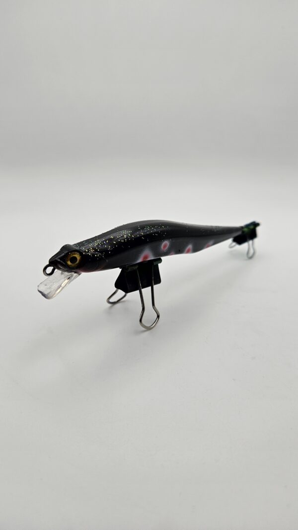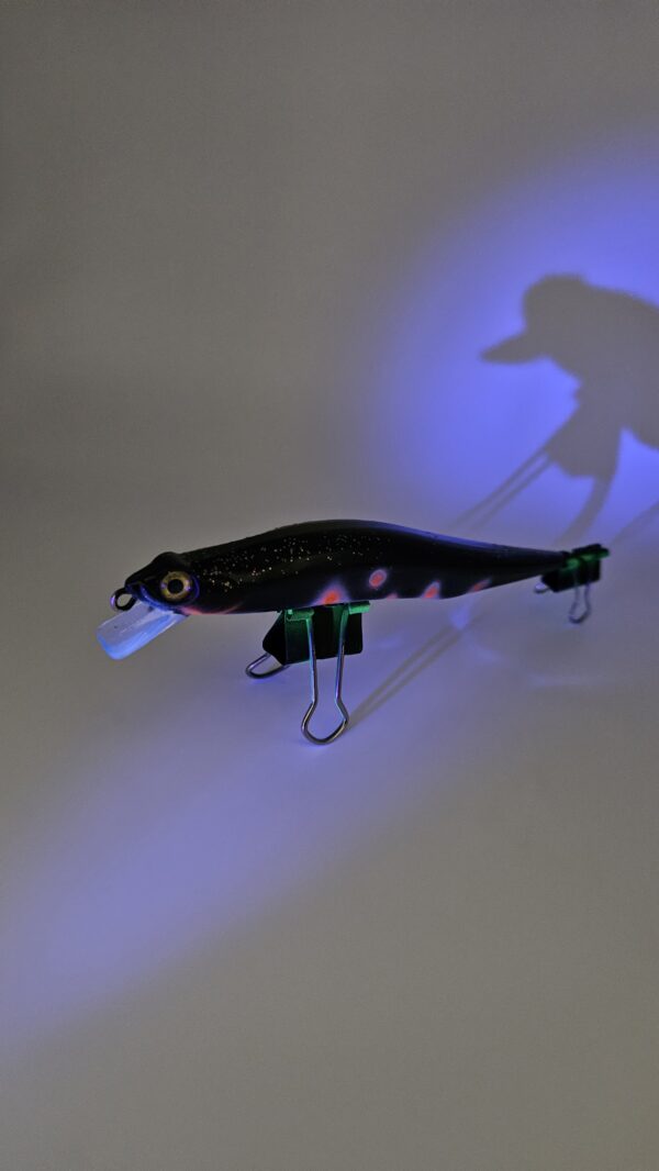 Das auffällige Design des „Nightmare Z“ mit seinem schwarzen Körper, dem leuchtenden weißen Bauch und den roten UV-aktiven Punkten ist besonders in trüben Gewässern und bei Nacht ein Blickfang. Diese UV-aktiven Punkte verstärken die Attraktivität des Köders und locken selbst scheue Raubfische aus ihrem Versteck.
